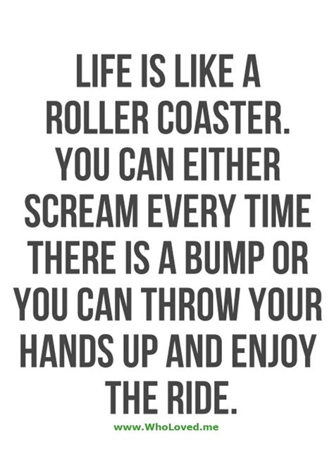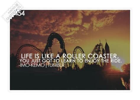 Life is like a roller coaster. You get on. Sometimes the hills are high sometimes there low. Sometimes they twist and make you sick, sometimes they flip you upside down. But as soon as you get off, it doesn't matter whether you got sick or you loved the ride. What matters is that your alive, and thats better then anything you've ever survived.Discover and share Quotes About Life Is Like A Roller Coaster. Explore our collection of motivational and famous quotes by authors you know and love.Life is like a roller coaster, live it, be happy, enjoy life. Avril Lavigne. It's been quite a roller coaster ride, but I've grown and learned a lot about myself. The greatest thing is being able to interact with fans and touch people's lives... for that I give thanks. Christina Aguilera.A Roller Coaster Life Quotes. Poor people make a very poor business of it when they try to seem rich. — Herman Melville. Life's a roller coaster, and you never know when it's going to take a turn. — Ty Pennington. Life is like a roller coaster. Ups and downs are just part of the ride. — Bill Loguidice.02/02/2020 · Life is like a roller coaster, live it, be happy, enjoy life. – Avril Lavigne.Life is like a roller coaster. You can either scream every time there is a bump or you can throw your hands up and enjoy the ride AnonymousRoller Coaster Quotes – Life Is a Ride. 1. It’s clear that the thrill of the fall keeps us going. 2. There’s that fear of the unknown, but there’s a reason we’re going with the ups and downs. 3. It matters what you’re doing on the ride and who you’re with on your journey. 4.Life is like a roller coaster. I like the ups and downs. Life is like a roller coaster with many ups and down. The faster the better. I picked a bad day to stop sniffing glue. Lloyd Bridges